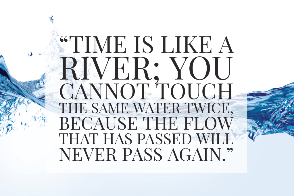 “Time is like a river; you cannot touch the same water twice, because the flow that has passed will never pass again.”